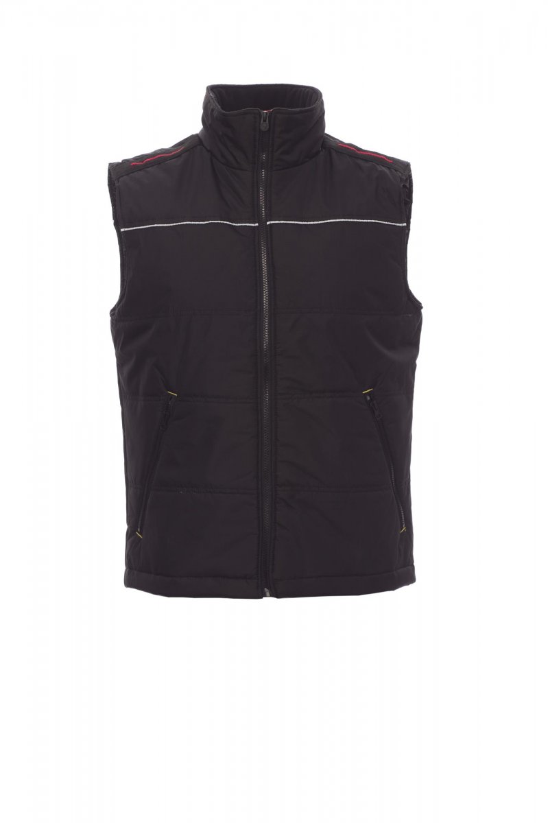 Unisexová vesta s 5mm plastovým zipem s kovovým jezdcem, tvarovaná záda, dvě velké vnějšíí kapsy na zip, reflexní lemování na hrudi a na zádech. Vnitřek: zateplení, prošívaný materiál podšívky s vysokou hustotou, flísový vnitřek límce, jedna kapsa.