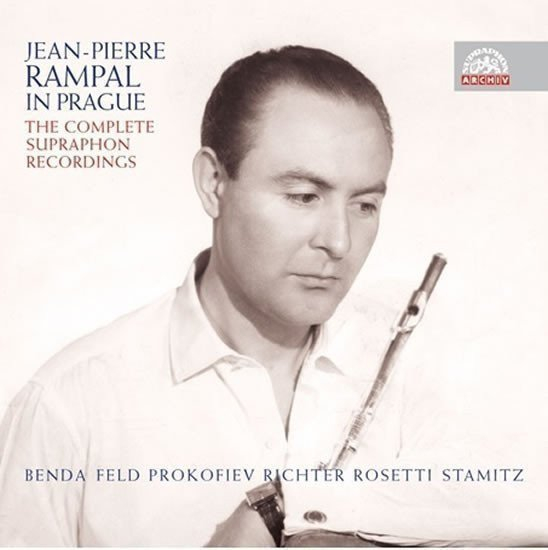 Jean-Pierre Rampal v Praze/Kompletní supraphonské nahrávky Jindřich Feld – Koncert pro flétnu a orchestr, Sergej Prokofjev – Sonáta pro flétnu a klavír D dur op. 94, František Antonín Rössler (Francesco Antonio Rosetti) – Koncert D dur, Franz Xaver Richter – Koncert D dur, Sonata da camera č. 3 A dur *, František Benda – Koncert e moll, Sonáta F dur, Carl Stamitz – Koncert G dur op. 29 Jean-Pierre Rampal – příčná flétna, Česká filharmonie / Václav Jiráček, Pražský komorní orchestr / Milan Munclinger, Václav Neumann, Martin Turnovský. Alfréd Holeček – klavír, Viktorie Švihlíková – cembalo Praha se Jean-Pierru Rampalovi (1922–2000) stala již při jeho první návštěvě vzácným místem na mapě světa. Rampalova první cesta do země východního bloku dala vzniknout přátelství s jiným mimořádným hudebníkem Milanem Munclingerem, s nímž mj. sdílel vášeň pro barokní hudbu. Právě díky Munclingerově iniciativě se Rampal 31. 5. 1955 představil pražskojarnímu publiku na beznadějně vyprodaném recitálu s Alfredem Holečkem. (O pouhé čtyři dny dříve Mstislav Rostropovič na Pražském jaru provedl kompletní Bachovy violoncellové suity). Hned následujícího dne pořídil Rampal první z řady nahrávek pro Supraphon – Prokofjevovu sonátu. Do roku 1956 pak vznikly premiérové nahrávky sonát F. Bendy a F. X. Richtera, koncertů Stamitze, Rosettiho a především – s Pražským komorním orchestrem pod Munclingerovým vedením – koncerty Richtera a Bendy. Výjimečnost posledních dvou dokládá i ohlas mezinárodní kritiky: deska byla oceněna Grand Prix du Disque de l’Académie Charles Cros. Rampalova supraphonská diskografie se uzavřela nahrávkou s Českou filharmonií z dubna 1958: flétnový koncert tehdy 33letého Jindřicha Felda i jméno skladatele se dostalo do mezinárodního povědomí právě díky Rampalovi. Praha zůstala i v pozdějších letech tomuto fenomenálnímu flétnistovi místem návratů na koncertní pódia i setkávání se vzácnými a blízkými přáteli. Pražské otisky Jean-Pierre Rampala – legendární nahrávky v nově remasterované podobě.