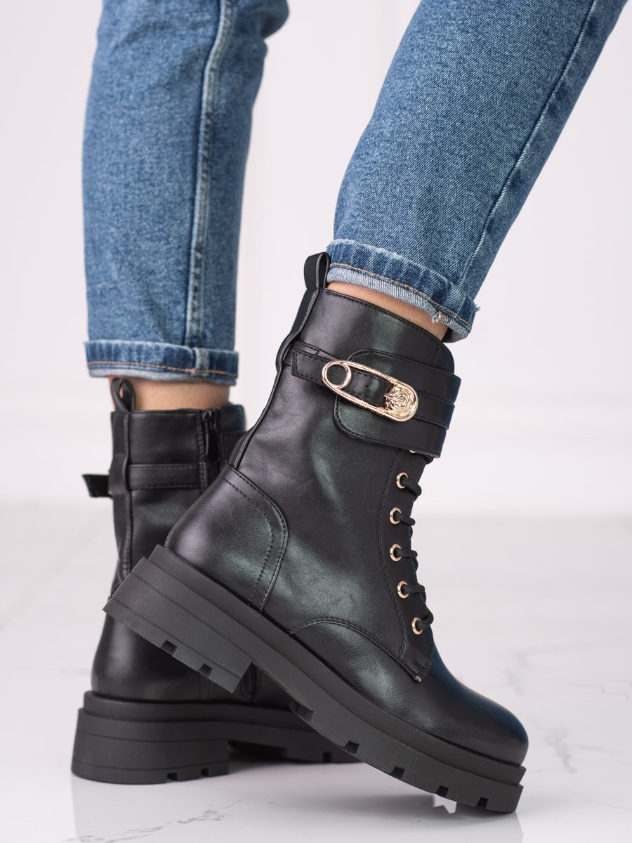 Praktické kotníčkové boty dámské černé na plochém podpatku 37
