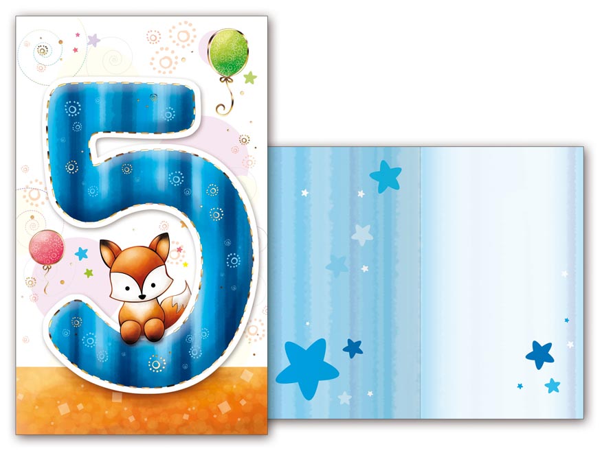 Přání k 5. narozeninám Dětské přání k 5. narozeninám s obrázkem lišky. Oslavy narozenin patří k výjimečným a příjemným okamžikům v životě. Potěšte oslavence a spolu s dárkem mu věnujte originální a krásné přáníčko, které mu bude připomínat tuto radostnou událost.Text na přední straně přání:5Text uvnitř přání:Bez textuPřání je baleno v sáčku, součástí balení je i dopisní obálka.