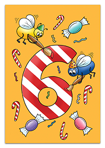 Blahopřání k 6.narozeninám s včeličkami a sladkostmi. Přání je vevnitř zdobeno motivy z titulní strany s textem Všechno nejlepší k narozeninám!. Baleno v bílé obálce. Rozměr 19,5x13,5cm.