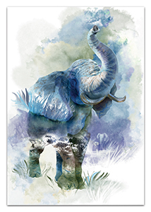 Blahopřání malované akvarel -slon. Přání je vevnitř zdobeno motivy z titulní strany s textem Všechno nejlepší!. Baleno v bílé obálce. Rozměr 19,5x13,5cm.