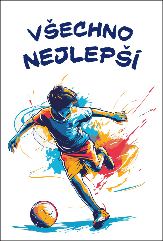 Originální přání pro všechny malé i velké fotbalisty i pro ty, kteří mají fotbal rádi s textem na titulce Všechno nejlepší. Vnitřní strana je zdobena motivem z titulní strany s textem: Co nejvíc vítězství a podařených zápasů. Ať se ti daří! Není baleno v igelitu, součástí je bílá obálka, rozměr 17x11,5cm.
