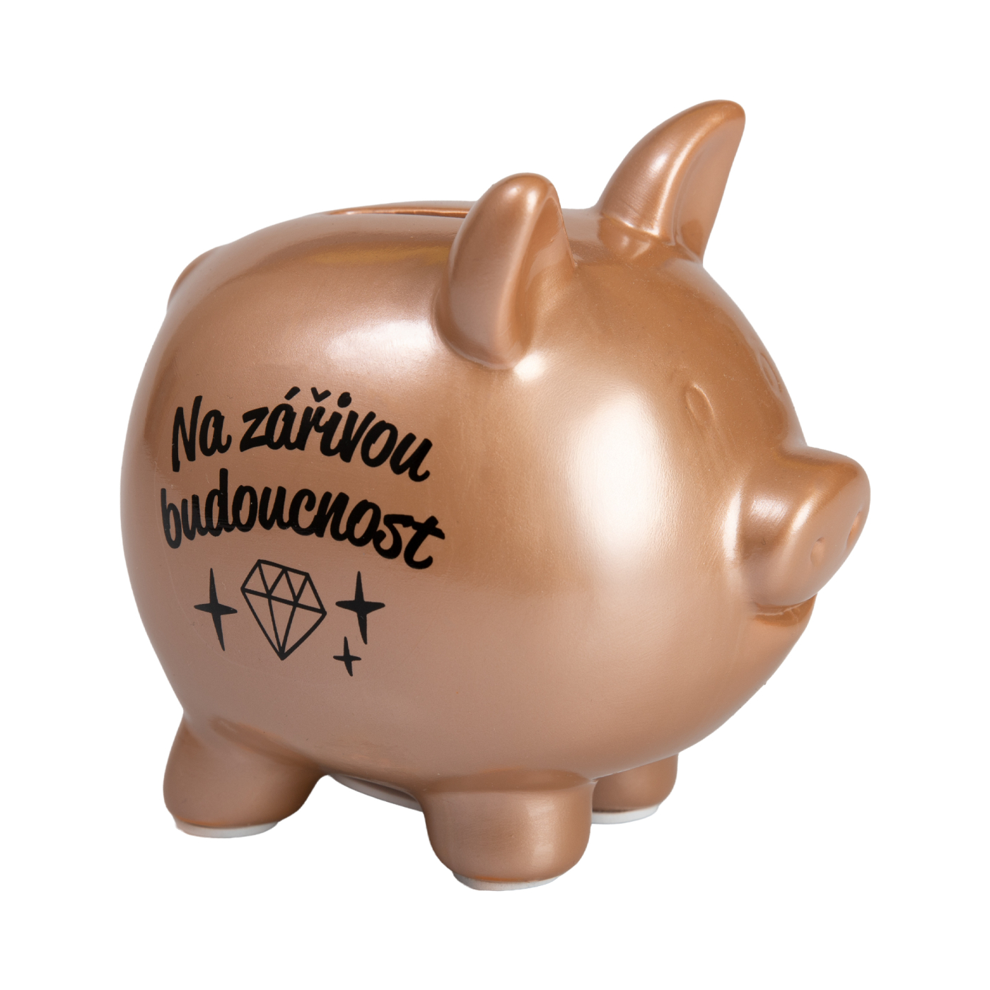 Spořte si s veselou pokladničkou ve tvaru prasátka. Výška prasátka: 13 cm Materiál: keramika