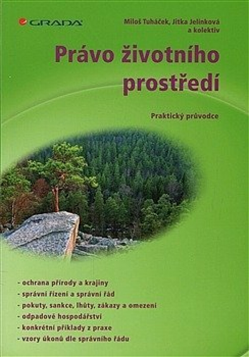 Potřebujete získat základní přehled v právu životního prostředí, nebo jej prohloubit? Pak je tu tato ojedinělá kniha na českém trhu s právní literaturou! Naleznete v ní na jednom místě všechny důležité informace týkající se ochrany životního prostředí, jež jsou jinak roztříštěné do mnoha zákonů. Publikace je komplexní a zároveň psaná tak, aby ji pochopil každý, kdo se zpracovávanou oblastí zabývá. Součástí knihy jsou praktické příklady. Publikace, napsaná environmentálními právníky-praktiky, poslouží jak těm, kteří potřebují sepsat jednoduché úkony ve správním řízení, tak zkušenějším uživatelům práva životního prostředí, kteří hledají odpovědi na sporné otázky a odkazy na nejnovější klíčovou judikaturu.