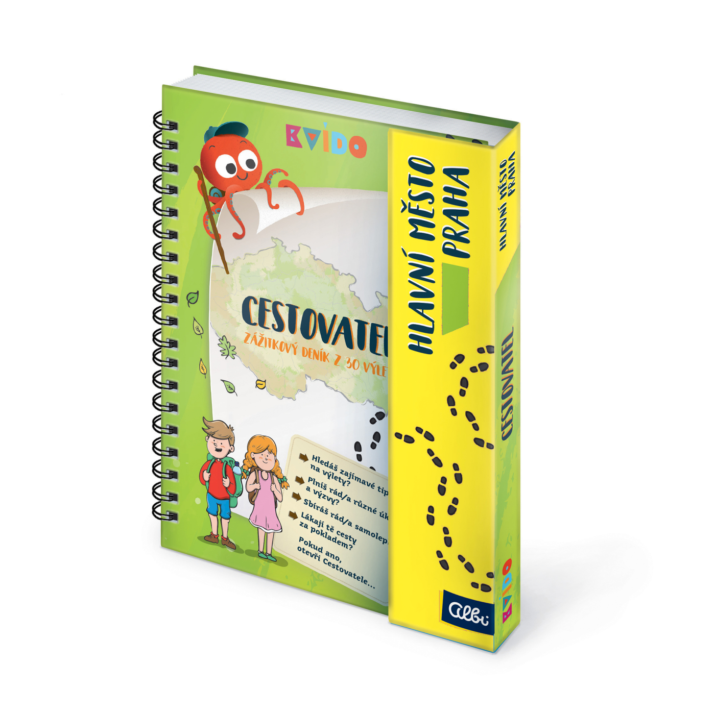 Procestujte s Kvídem celou naší republiku. Chobotničák Kvído vám zpestří každý výlet a postará se o zábavu v každém koutu České republiky. Každý jeho Zážitkový deník z řady Cestovatel obsahuje 30 zajímavých míst z daného kraje republiky. Cestovatelé od 4 do 12 let si tak mohou spolu s rodiči užít dobrodružné nejen léto. Každý Zážitkový deník obsahuje krátký popis, 2 lehčí úkoly pro mladší děti a 2 těžší úkoly pro starší děti. Součástí deníků je i tajná cesta za pokladem v přírodě. Děti v deníku najdou i přehlednou mapu kraje, tužku a samolepky, kterými si mohou značit, kolik výletů již podnikly. Deníky od Kvída mají kroužkovou vazbu a pevné desky s magnetickým zavíráním, aby se dětem v batůžku nepomačkaly. Rozměry: 15 cm × 18,2 cm × 1 cm.