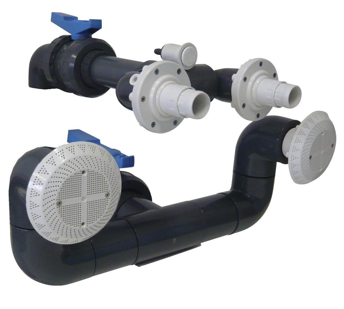 Předmontážní sestava COMPASS Double Jet obsahuje: 2x sání, 2x tryska, pneumat. tlačítko, 2x kulový ventil a fitinky pro připojení.