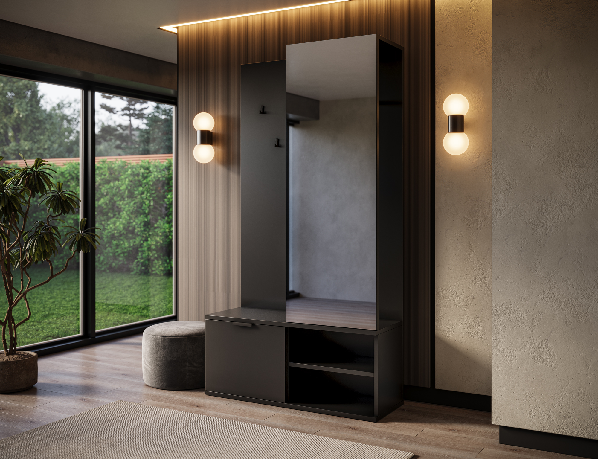 Předsíňová stěna P24 Economy levá Barva korpusu: Trufla, Lišta: Trufla, Barva dvířek: Trufla