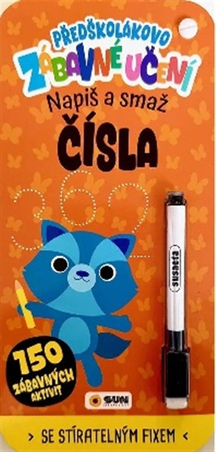 Kniha 150 zábavných aktivit – Předškolákovo zábavné učení: ČÍSLA- napiš a smaž - představuje novou, hravou formu výuky, která děti nejen pobaví, ale zároveň rozvíjí jejich asociační schopnosti, paměť, orientaci i představivost.Určena je především předškolákům, kteří si procvičí správné držení tužky a uvolnění ruky a naučí se čísla. Tato vzdělávací série je navržena tak, aby děti předškolního věku hravě naučila psát a rozumět číslům od 1 do 20.Postupně je vede od jednoduchého rozpoznávání a psaní jednotlivých číslic až po chápání složení čísel, jako jsou jednotky a desítky, což je základní předpoklad pro porozumění dvouciferným číslům. Děti si procvičí nejen psaní číslic, ale i jejich správný tvar (formu), což podporuje jemnou motoriku a uvolnění ruky. Součástí výuky jsou i základní jednoduché příklady sčítání, které pomáhají pochopit nejen matematické operace, ale i princip tvorby čísel. Výuka je doplněna zábavnými aktivitami, jako jsou bludiště či hravé úkoly, které udržují dětskou pozornost a prodlužují motivaci k učení. Série tak nabízí dlouhodobou a efektivní podporu při osvojování číselné gramotnosti v raném věku.Díky této metodice děti snadno zvládnou první psané čísla, naučí se spojovat číslice do větších celků a zároveň získají první zkušenosti s jednoduchými matematickými operacemi, což je skvělým základem pro další školní vzdělávání.Knihu lze použít pro přípravu na školní zápis. Učení u děti rozvíjí jejich zrakové vnímání, prostorovou orientaci, jemnou motoriku a schopnost rozlišovat a porovnávat předměty podle velikosti, barvy a tvaru.Tyto dovednosti jsou důležité pro správné pochopení a zvládnutí psaní a dalších školních dovedností.Tyto úkoly se často objevují při zápisu do školy.Kniha má praktický a příjemný formát, je k ní připojena mazací fixka, kterou děti mohou tahy snadno smazat, opravit a opakovat úkoly znovu. Celá koncepce je chytrá, zábavná a šetrná. Vstupte s nimi do světa dobrodružství, kde učení není nikdy nudné!
