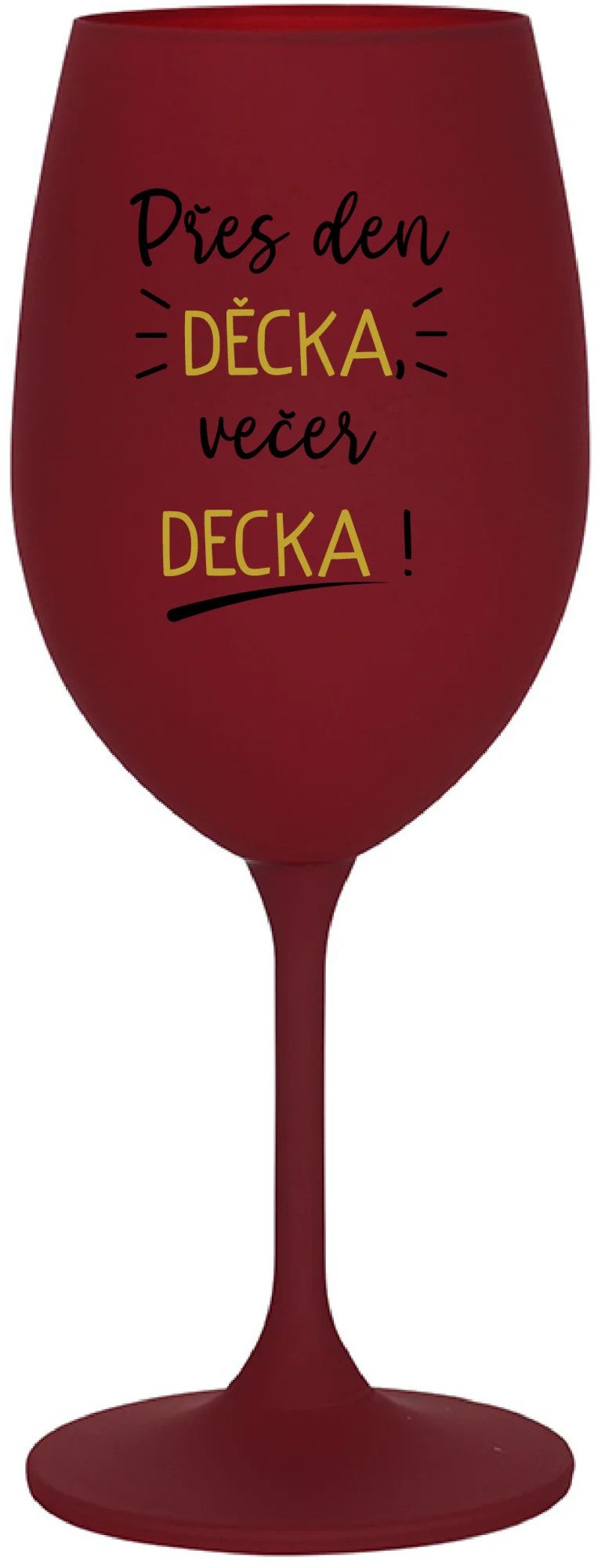 Vinná bordo sklenice s originálním motivem PŘES DEN DĚCKA, VEČER DECKA! je krásným a osobitým dárkem, které ale využijete i Vy sami třeba ve chvílích, kdy si budete chtít zpříjemnit náročný den. Tyto originální vinné sklenice jsou totiž nejen pro výjimečné události, ale i pro běžné večery, které si chcete zpříjemnit sklenkou dobrého vína. Jistě proto potěší každého milovníka vína, i toho, kdo si umí svůj život vychutnat plnými doušky.