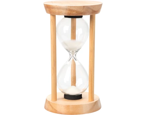 Elegantní přesýpací hodiny v dřevěném rámu s bílým pískem. Funkční i dekorativní, hodí se do každého interiéru. Ideální pro relaxaci či jako dárek.