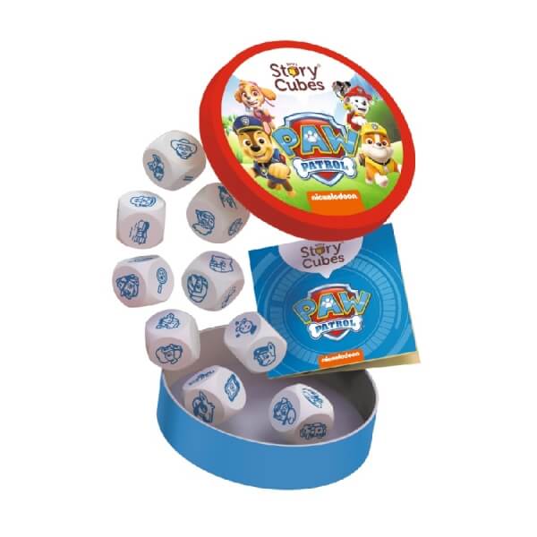 Příběhy na kostkách Paw Patrol (Tlapková patrola) Stačí hodit kostkami a dobrodružství může začít! Ideální hra pro rozvoj kreativity, vyprávění a společné zábavy celé rodiny. Tato kreativní vypravěčská hra vtáhne děti i dospělé do světa Tlapkové patroly, kde se fantazii nekladou žádné hranice. Postavy, předměty, místa i zvířata se spojují do zcela nových a nečekaných příběhů, které vznikají přímo u herního stolu. Jak se hraje? První hráč hodí všemi devíti kostkami, vybere si jednu a začne vyprávět příběh inspirovaný jejím symbolem. Každý další hráč naváže svou částí, přičemž si vezme jednu z dosud nepoužitých kostek. Příběh se postupně rozvíjí, zamotává a překvapuje. Poslední hráč má za úkol propojit všechny dějové nitky a dovést vyprávění k velkolepému finále. Hru lze hrát podle pravidel, nebo si vytvořit vlastní varianty – fantazie je tady tím nejdůležitějším pravidlem! Co najdete v balení? 9 tematických kostek se symboly Paw Patrol Praktickou plechovou krabičku Pravidla ve čtyřech jazycích: češtině, slovenštině, rumunštině a angličtině