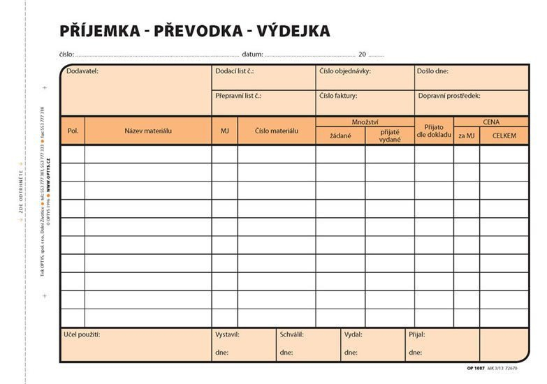 Příjemka-převodka-výdejka, A5, 100 listů, NCR