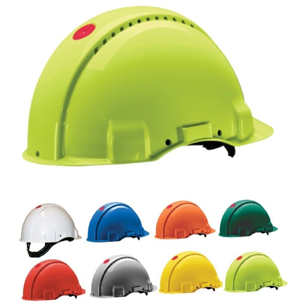 Přilba bezpečnostní 3M, G3000 s Uvicator senzorem, Bezpečnostní přilba G3000 byla navržena v úzké spolupráci s parcovníky v oblasti lesnictví a průmyslu. Je určena pro použití v nepříznivých podmínkách s vysokými nároky na účinnou vysokou ochranu a spnění normy EN 397. Přilba je vybavena z ABS plastu stabilizovaného proti vlivům ultrafialového záření. Hmotnost 310 g Rozměry : 54-62cm Peltor TM Uvicator TM Senzor - indikátor signalizující čas na výměnu přilby Optimalizované odvětrání s větším počtem větracích otvorů než u běžné přilby s odvětráním. Krátký okraj poskytuje větší zorné pole Vnitřní výstroj přilby lze umístit ve dvou polohách tak, aby přilbu bylo možno nosit i s kšiltem dozadu, vhodné např. při práci ve stísněných prostorách nebo při šplhání. Tenká konstrukce - měkce oblý design zabraňuje zachycení částí přilby za větve apod. Barvy : bílá, žlutá, zelená, reflexní žlutá, modrá, červená, oranžová