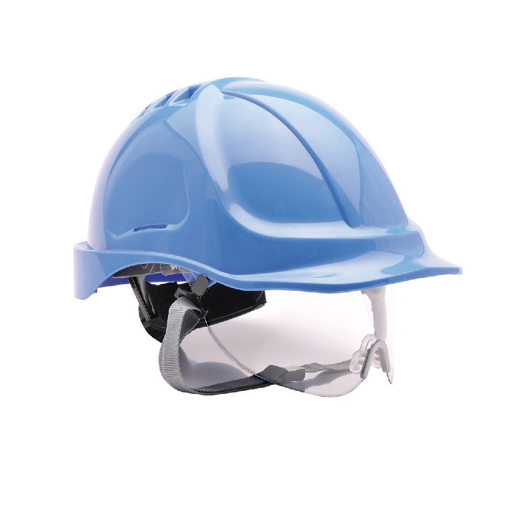 Ochranná přilba s regulací velikosti, 56-63 cm, EN397,EN166 1B AS,AF, do -30st.C a 440V, mix barev 6-ti bodové upínání, textilní popruhy 2cm,absorpční proužek, regulace velikosti kolečkem vzadu, výsuvný čirý zorník sloužící k ochraně zraku,skořepina z odolného ABS materiálu,ventilační otvory Barva - bílá,modrá - skladem Barva - žlutá,červená na objednání