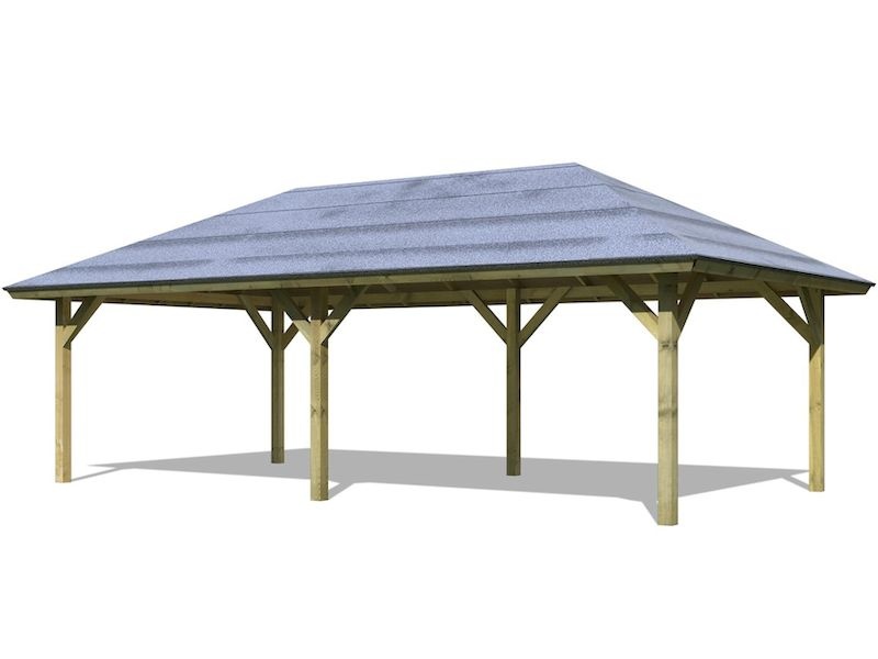 Dřevěná garáž (43545) Karibu natur (stěna 40 mm), rozměry 3,87 × 5, 37 m