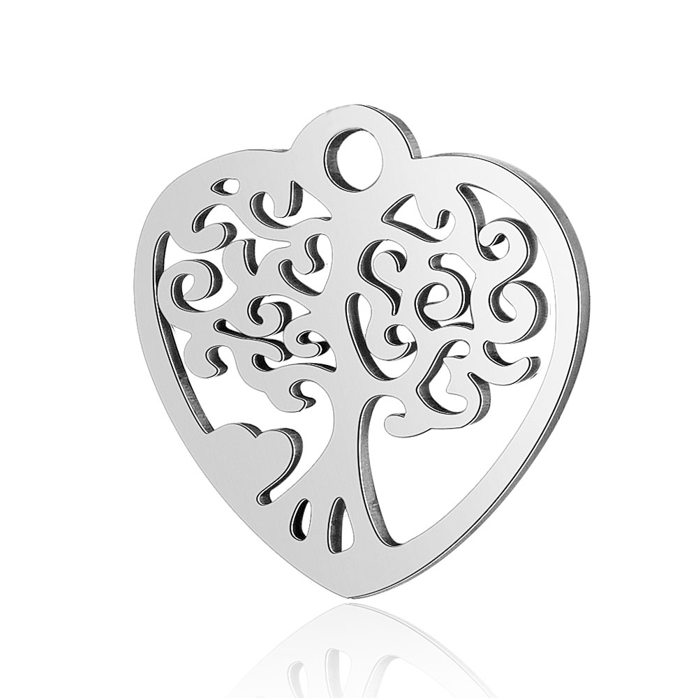 Kvalitní přívěsek ve tvaru srdce s vyřezaným stromem o výšce 15,5 mm, šířce 15,5 mm, hloubce 1 mm s velikostí průvleku 1,5 mm. Přívěsek v platinovém provedení je vyroben z nerezové oceli typu 201. Nerezové přívěsky jsou laserově řezány a díky tomu mají krásně pravidelné tvary a zpracované detaily. Přívěsek prodáváme po jednom kusu. Nejpoužívanější nerezovou ocelí je tzv. austenitická ocel, která je odolnější než běžná chromová ocel. Proto se setkáváme s označením AISI 303, 304, 316 aj.. Typ 304 je standardní, široce používaná a skládá se přibližně z 18 % chromu a 8 % niklu, zbytek je železo. Nerezová ocel 304 má dobrou odolnost vůči vodě, vlhkosti a méně silným kyselinám. Typ 316 obsahuje stejné množství chromu a niklu, ale také 2 % až 3 % molybdenu, který zvyšuje odolnost vůči korozi. Oba druhy nerezové oceli jsou dobře leštitelné a nejsou magnetické.