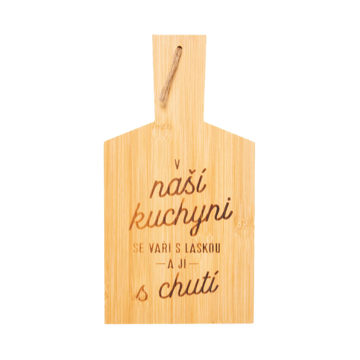 Prkénko je vyráběno z eco-friendly bambusového dřeva. Rozměry: 14 cm × 26,5 cm × 1 cm