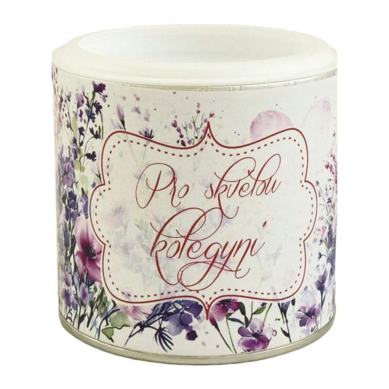 Pro skvělou kolegyni porcovaný čaj 10x3g Chutný ovocný čaj v praktických pyramidových sáčcích v nádherné dárkové dóze se svěžím motivem rozkvetlé letní louky, která zaručeně potěší každou super kolegyni. Text:Pro skvělou kolegyni Složení: jablko, ibišek, brusinky (brusinky, cukr, slunečnicový olej), aroma. 1 čajový sáček zalijte 2,5 dl vroucí vody, ponechte 8 - 10 minut louhovat, poté přeceďte ovocný čaj aromatizovaný Země původu: Česká republika