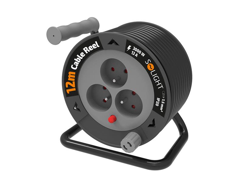 Prodlužovací kabel na bubnu - 3 zásuvky 12m SOLIGHT PB24