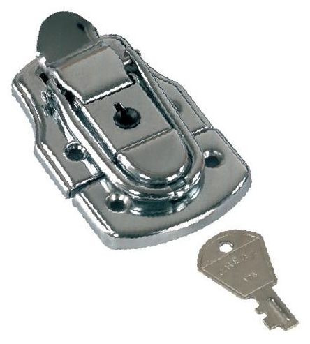 Chromovaný ocelový zámek s pákovým mechanismem a klíčem, otvory o průměru 3,5 mm