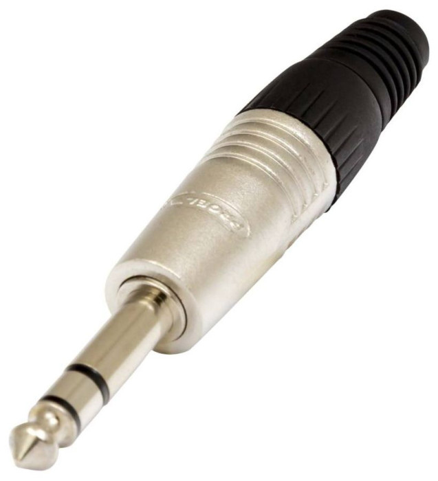 Profesionální stereo jack konektor 6,3 mm – 1/4”, barva: stříbrná s černým kroužkem