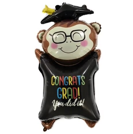 Promoce balónek opice 46 cm x 85 cm Balónek nafukujte jenom vzduchem. Balónek má v horní části očka na zavěšení. Fóliové balónky nabízíme v různých tvarech a barvách. Jsou sice dražší než klasické latexové balónky, ale jejich výhodou je kvalita a nepropustnost. Fóliové balónky nafouknuté vzduchem Vám vydrží několik měsíců bez výrazných změn. Balónek má samouzavíratelný ventil, který ihned po nafouknutí zamezí úniku vzduchu. Při nafukování vzduchem používejte prosím ruční pumpu popř. brčko na pití. Inspiraci pro Vaší dekoraci najdete na internetovém magazínu www.party-narozeniny.cz. Velikost nabízených balónků je 46 cm x 85 cm. Je možné nafukovat jenom vzduchem. POZOR!!! Všechny námi nabízené fóliové balónky mají samouzavíratelný ventil. V případě nafukování vzduchem, nafukujte ruční pumpou. Po nafouknutí se balonky samy uzavřou. Je možné je taky průběžně přes uzavíratelný ventil dofukovat.