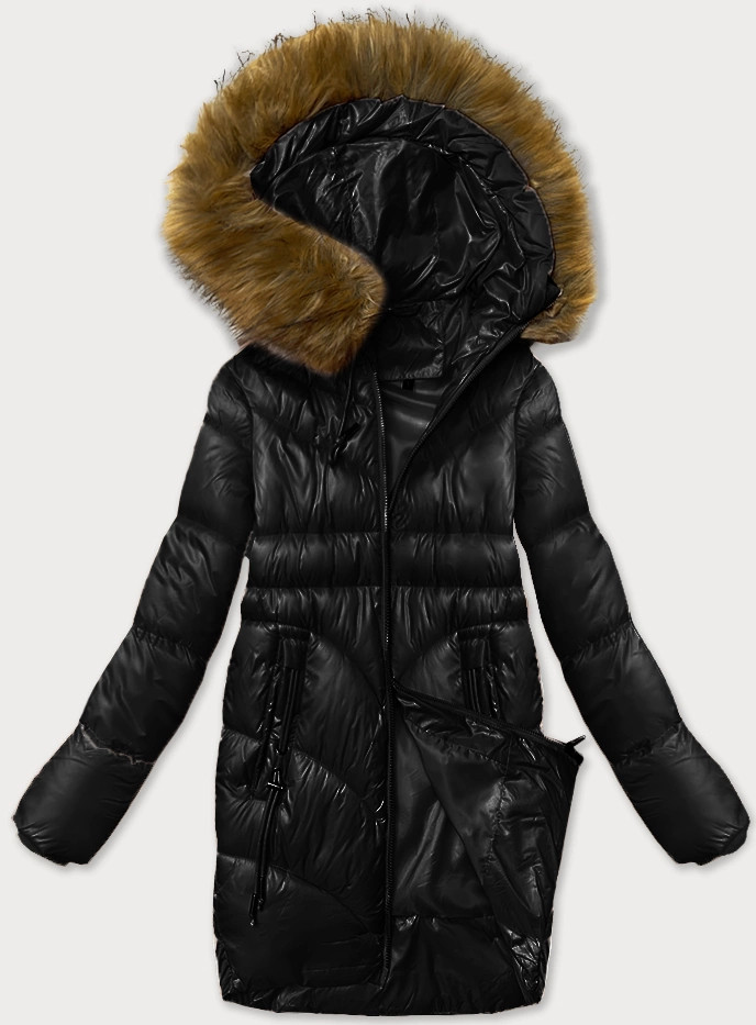 Jednoduchá černá dámská zimní bunda s ozdobnými kapsami S'west (B8259-1) odstíny černé XXL (44)