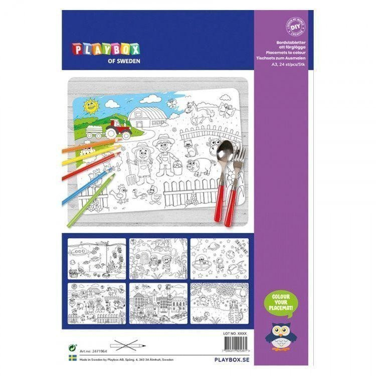 Vybarvěte si vlastní prostírání z papíru. Obsahuje 6 různých motivů ( celkem 24 ks). Papíry jsou ve velikosti A3. Pastelky nejsou součástí balení.
