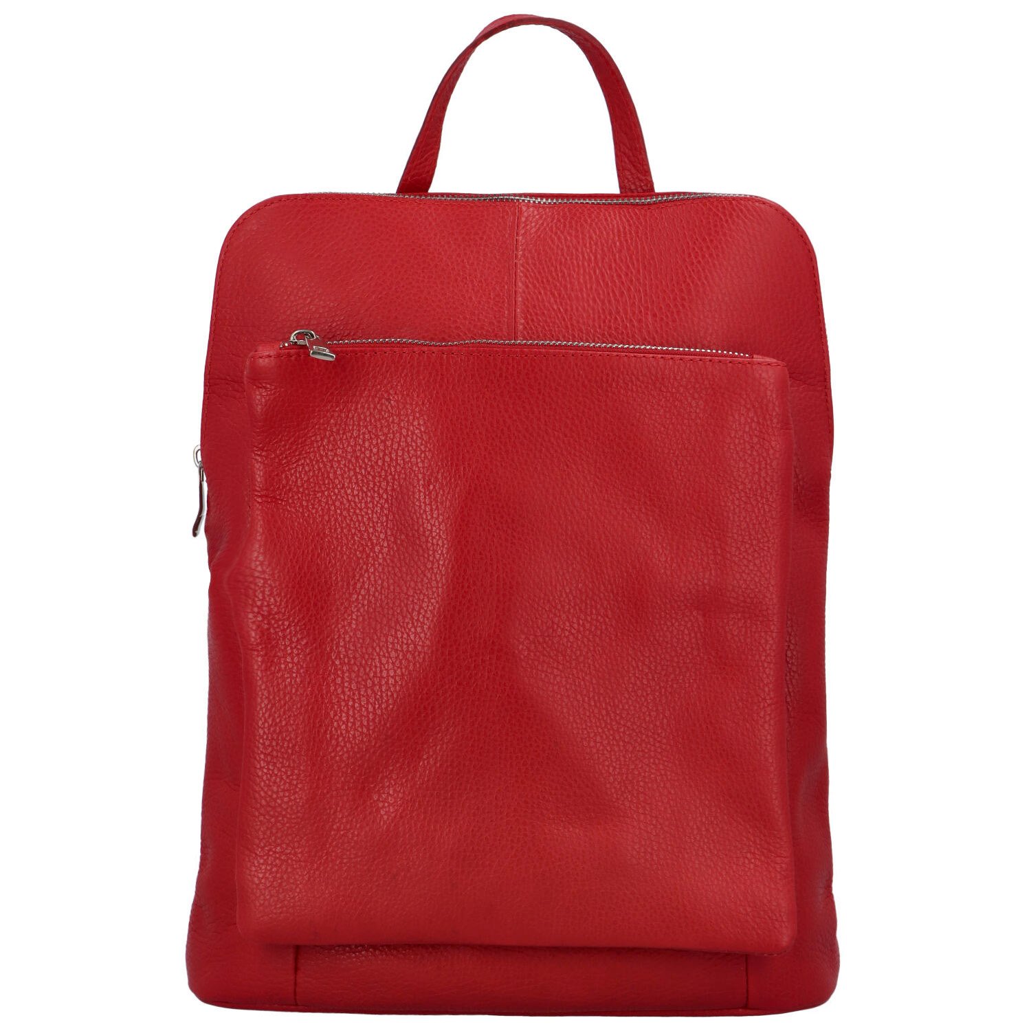 Prostorný dámský kožený batoh Jean, výrazná červená