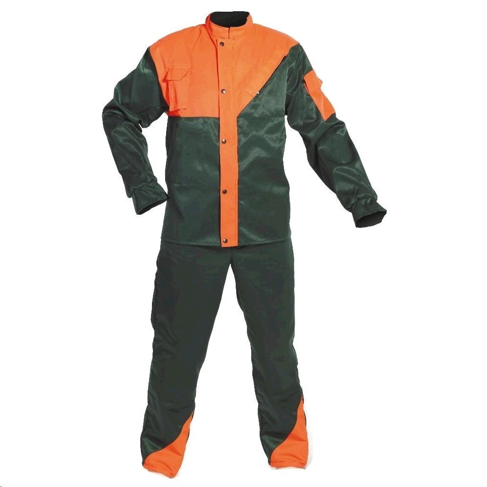 • Tradiční model oblíbený nejenom u českých profesionálních lesních dělníků • Oblek s protipořezovými laclovými kalhotami pohodlného střihu v zeleném provedení s výstražným oranžovým značením • Nově je použita tkanina vyráběná se zvýšeným požadavkem na trvanlivost a odolnost při práci v lesním hospodářství a nově je také lehce upraven střih k většímu komfortu nošení • Blůza má prodloužený zadní díl pro ochranu ledvin, na levém rukávu kapsičku pro sterilní obvazový balíček první pomoci a na levé straně diagonálně umístěnou kapsu na zip • Pravá strana bundy je doplněna o vnější kapsičku na telefon a vnitřní kapsu na suchý zip • Vnitřní část sedla a ramen jsou podšity bavlněnou protipotní mřížkou, límec je zevnitř podšit dyftýnovou tkaninou pro změkčení dotyku límce s pokožkou • V bocích bundy je guma pro zamezení nechtěného rozvolnění • Kalhoty s náprsenkou mají zvýšený zadní pas s všitou gumou a postranní rozparek se zapínáním • Dvě přední kapsy jsou nyní nově v provedení bez vnějších švů, diagonálně tvarovanou kapsu se zipem na náprsence a dvě kapsy na pravé nohavici vzadu, z toho jednu na kombinovaný klíč • Pružné široké šle jsou v oranžovém provedení s pevně nastavitelnou zasouvací přezkou • Spojujícím elementem celého obleku je diagonální rozhraní tkaniny v oranžovém a zeleném probarvení, které se uplatňuje i v jedinečném umístění bezpečnostních oranžových klínů na levé straně nohavic, korespondujících tak dle normy s protipořezovým úpletem • Dle statistik právě v těchto místech dochází k nejčastějšímu kontaktu s RŘP • Kalhoty jsou v dolní části opatřeny protiklíšťatovou úpravou • Úroveň ochrany: 1 • ochranná plocha: A • použité materiály vyrobenO z: polyesteru, polyamidu, polypropylenu, bavlny • barva: zeleno-oranžová • Velikostní sortiment: 44 - 66 • ve výškových třídách 170, 182, 194 cm