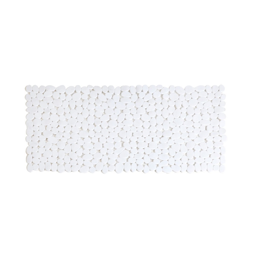 Obdélníková, bílá koupelnová předložka s oblázkovým motivem. Má protiskluzové přísavky pro zajištění bezpečnosti v koupelně. Čistit na 30 stupňů, nežehlit, chemicky nečistit, nebělit, nesušit v sušičce.