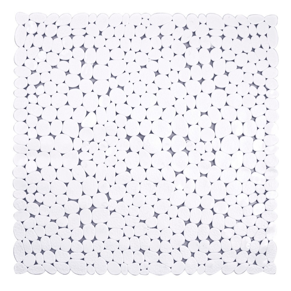 Čtvercová, bílá koupelnová předložka s motivem oblázků. Má protiskluzové přísavky pro zajištění bezpečnosti v koupelně. Čtvercová koupelnová předložka se doporučuje pro sprchové vaničky. Čistit na 30 stupňů, nežehlit, chemicky nečistit, nebělit, nesušit v sušičce.