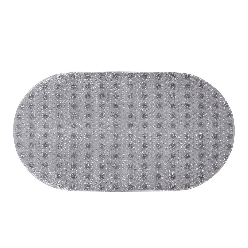 Koupelnová předložka z průhledného PVC s přídavkem dekorativních, třpytivých třpytek. Pro bezpečnost má přísavky. Podlouhlá koupelnová předložka je ideální do vany. Čistit na 30 stupňů, nežehlit, chemicky nečistit, nebělit, nesušit v sušičce.
