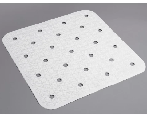 Bílá protismyková podložka do sprchy z PVC zajistí stabilitu a bezpečí. Má rozměry 54×54 cm, přísavky pro uchycení a snadno se čistí.