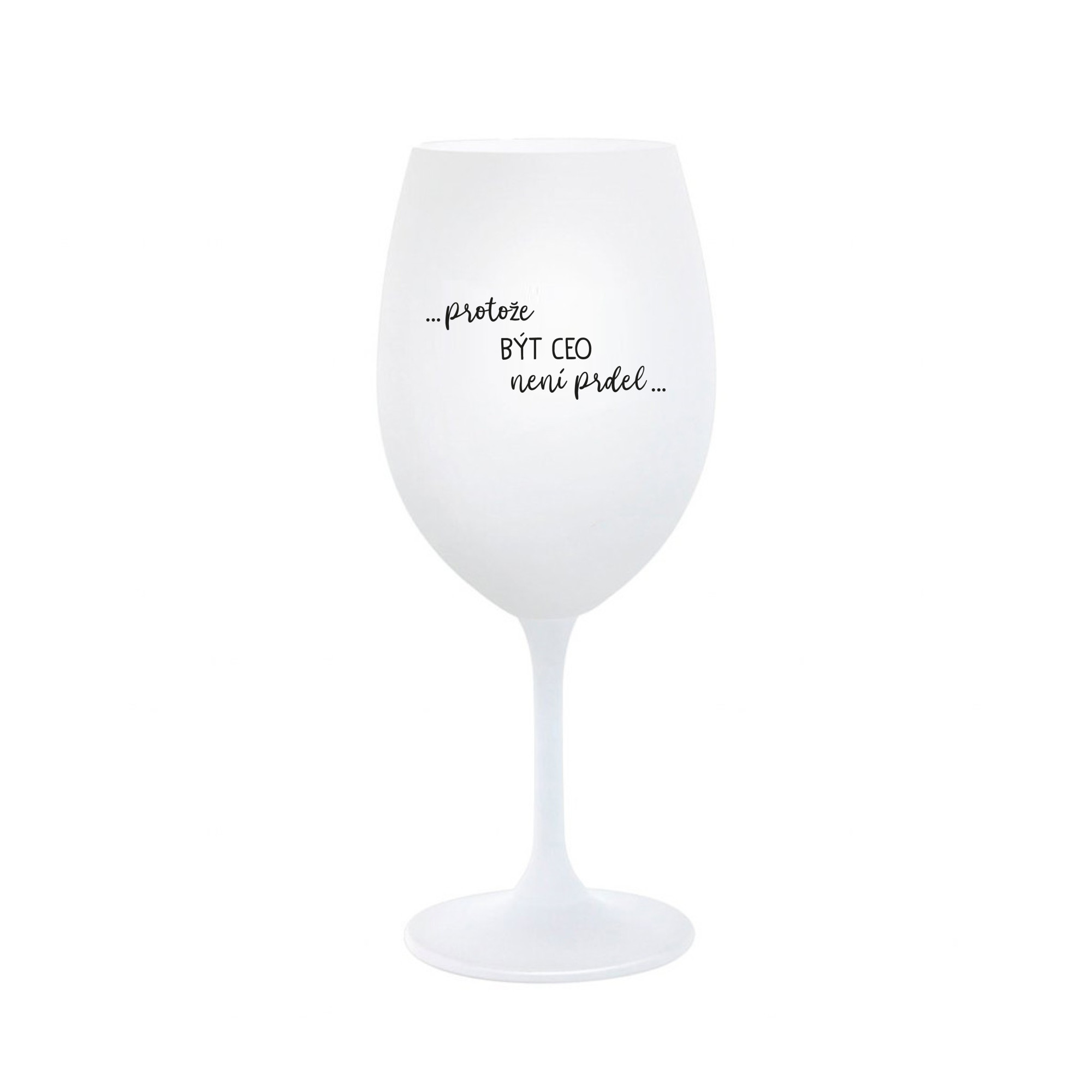 Vinná bílá sklenice s originálním motivem PROTOŽE BÝT CEO NENÍ PRDEL je krásným a osobitým dárkem, které ale využijete i Vy sami třeba ve chvílích, kdy si budete chtít zpříjemnit náročný den. Tyto originální vinné sklenice jsou totiž nejen pro výjimečné události, ale i pro běžné večery, které si chcete zpříjemnit sklenkou dobrého vína. Jistě proto potěší každého milovníka vína, i toho, kdo si umí svůj život vychutnat plnými doušky. Materiál sklo. Vyrobené s láskou v ČR