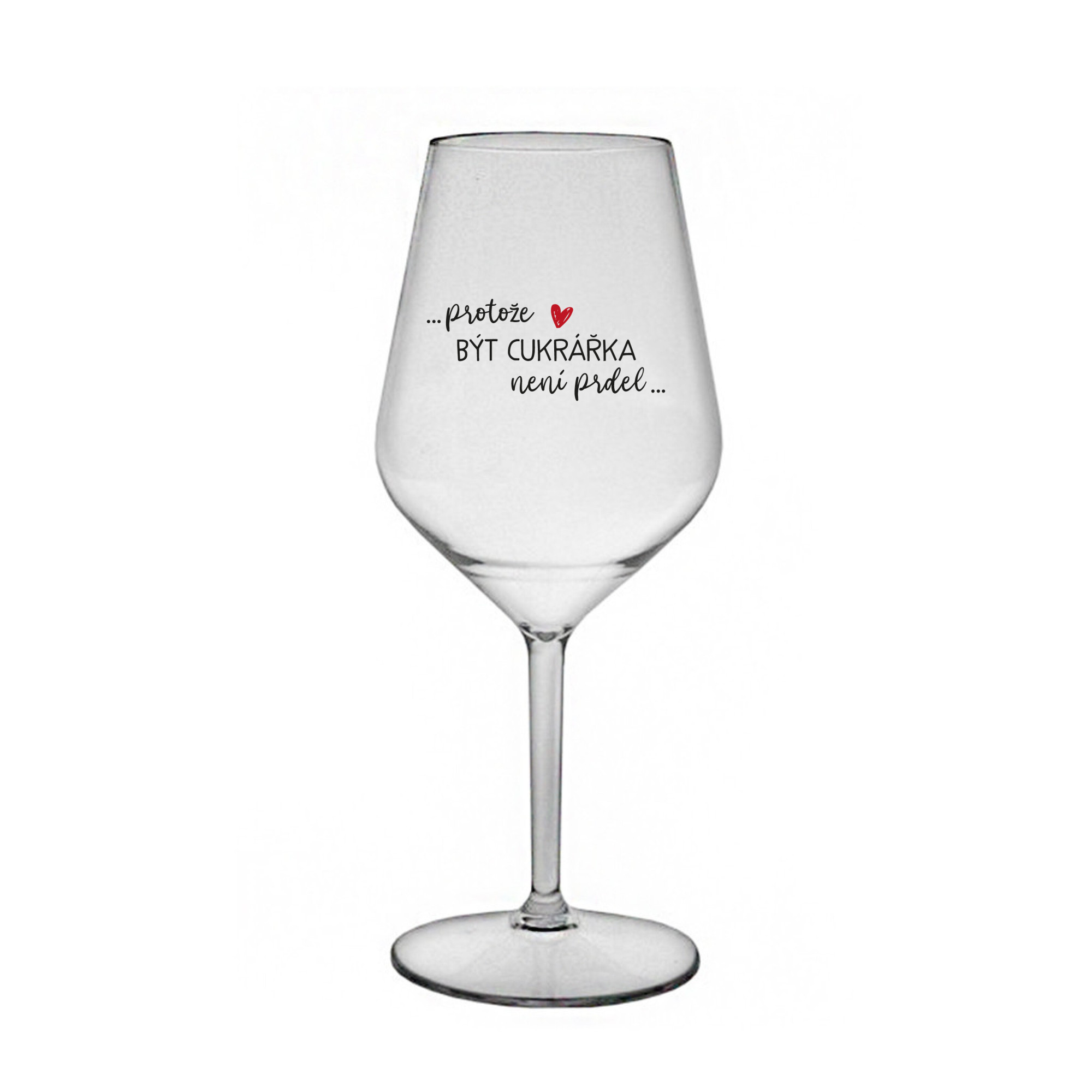 Nerozbitná čirá vinná sklenice s motivem PROTOŽE BÝT CUKRÁŘKA NENÍ PRDEL je skvělá na zahradu, pláž, výlet, piknik a parádu udělá i při kempování. Jelikož je vyrobená z kvalitního polykarbonátu je de facto nerozbitná. Je to luxusní kousek, s nímž si víno můžete vychutnat prostě kdekoliv. Mají ergonomický tvar, který příjemně padne do ruky a protože je lehká, usnadňuje to její přenášení. Je snadno skladovatelná a lehce se čistí. Díky svému designu si s ní můžete vychutnat doopravdy kdekoliv bezproblémové pití výborného vína. Materiál PP. Vyrobené s láskou v ČR