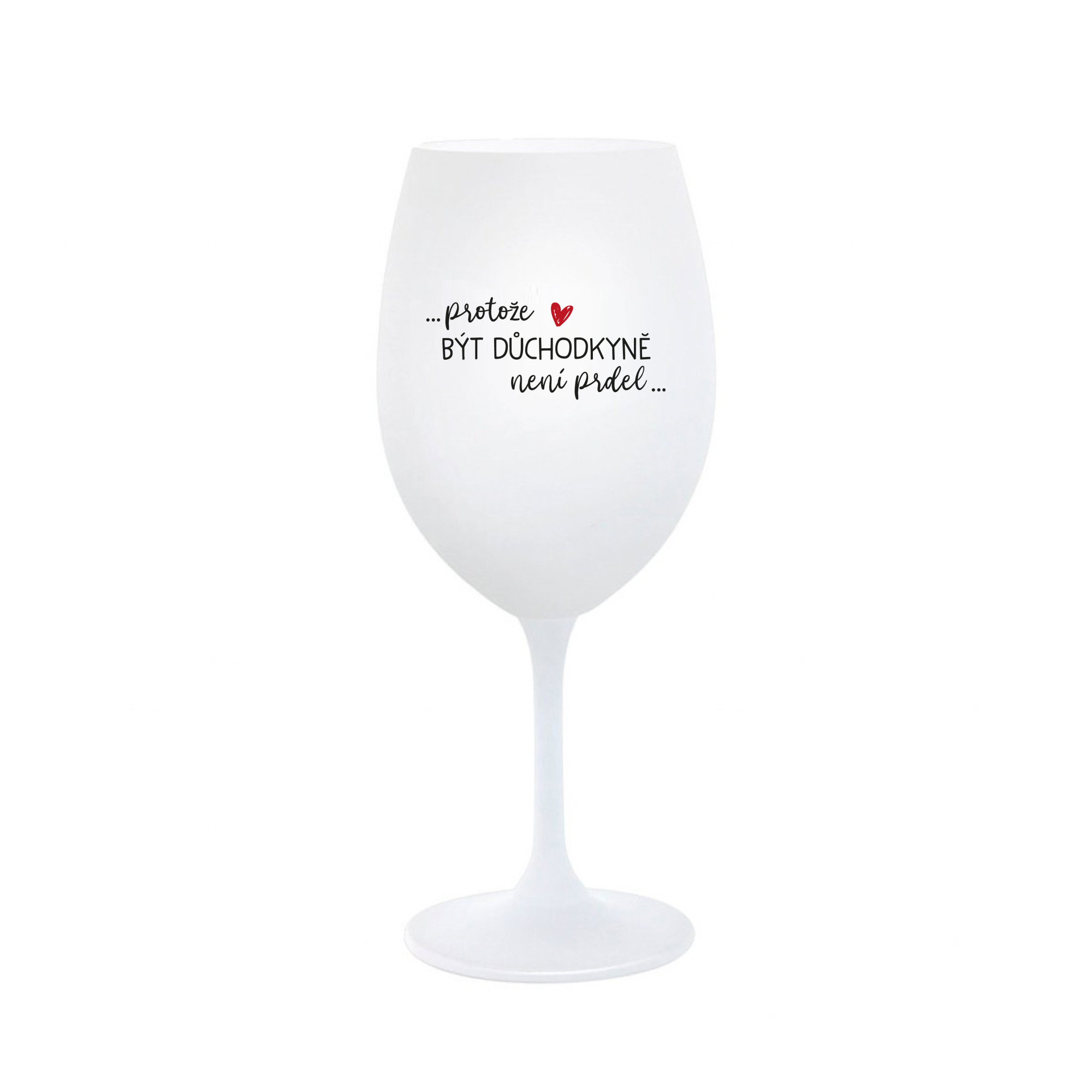 Vinná bílá sklenice s originálním motivem PROTOŽE BÝT DŮCHODKYNĚ NENÍ PRDEL je krásným a osobitým dárkem, které ale využijete i Vy sami třeba ve chvílích, kdy si budete chtít zpříjemnit náročný den. Tyto originální vinné sklenice jsou totiž nejen pro výjimečné události, ale i pro běžné večery, které si chcete zpříjemnit sklenkou dobrého vína. Jistě proto potěší každého milovníka vína, i toho, kdo si umí svůj život vychutnat plnými doušky. Materiál sklo. Vyrobené s láskou v ČR