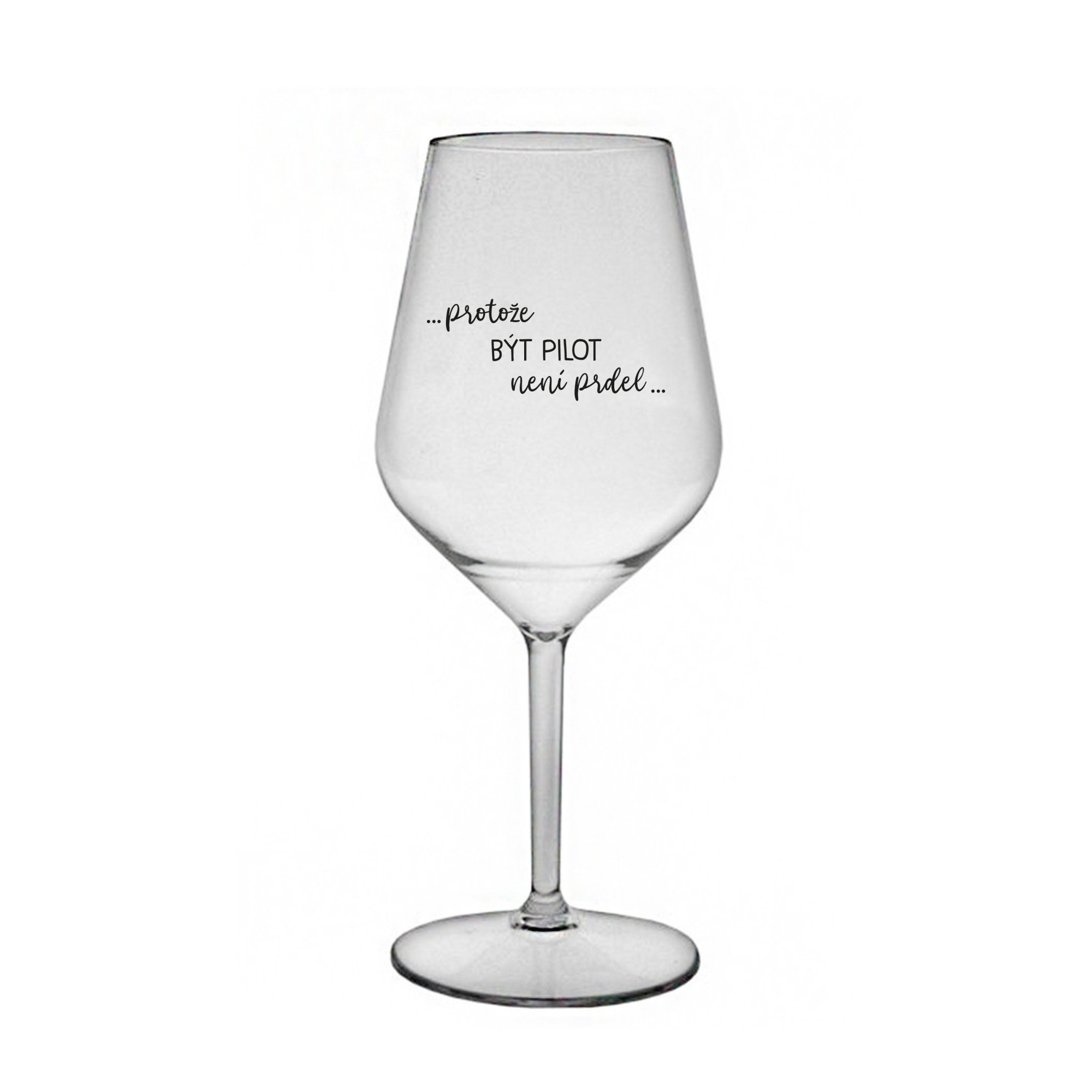 Nerozbitná čirá vinná sklenice s motivem PROTOŽE BÝT PILOT NENÍ PRDEL je skvělá na zahradu, pláž, výlet, piknik a parádu udělá i při kempování. Jelikož je vyrobená z kvalitního polykarbonátu je de facto nerozbitná. Je to luxusní kousek, s nímž si víno můžete vychutnat prostě kdekoliv. Mají ergonomický tvar, který příjemně padne do ruky a protože je lehká, usnadňuje to její přenášení. Je snadno skladovatelná a lehce se čistí. Díky svému designu si s ní můžete vychutnat doopravdy kdekoliv bezproblémové pití výborného vína. Materiál PP. Vyrobené s láskou v ČR