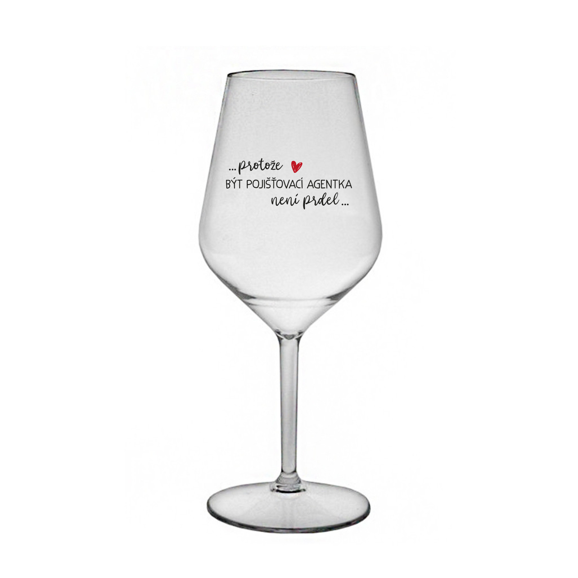 Nerozbitná čirá vinná sklenice s motivem PROTOŽE BÝT POJIŠŤOVACÍ AGENTKA NENÍ PRDEL je skvělá na zahradu, pláž, výlet, piknik a parádu udělá i při kempování. Jelikož je vyrobená z kvalitního polykarbonátu je de facto nerozbitná. Je to luxusní kousek, s nímž si víno můžete vychutnat prostě kdekoliv. Mají ergonomický tvar, který příjemně padne do ruky a protože je lehká, usnadňuje to její přenášení. Je snadno skladovatelná a lehce se čistí. Díky svému designu si s ní můžete vychutnat doopravdy kdekoliv bezproblémové pití výborného vína. Materiál PP. Vyrobené s láskou v ČR