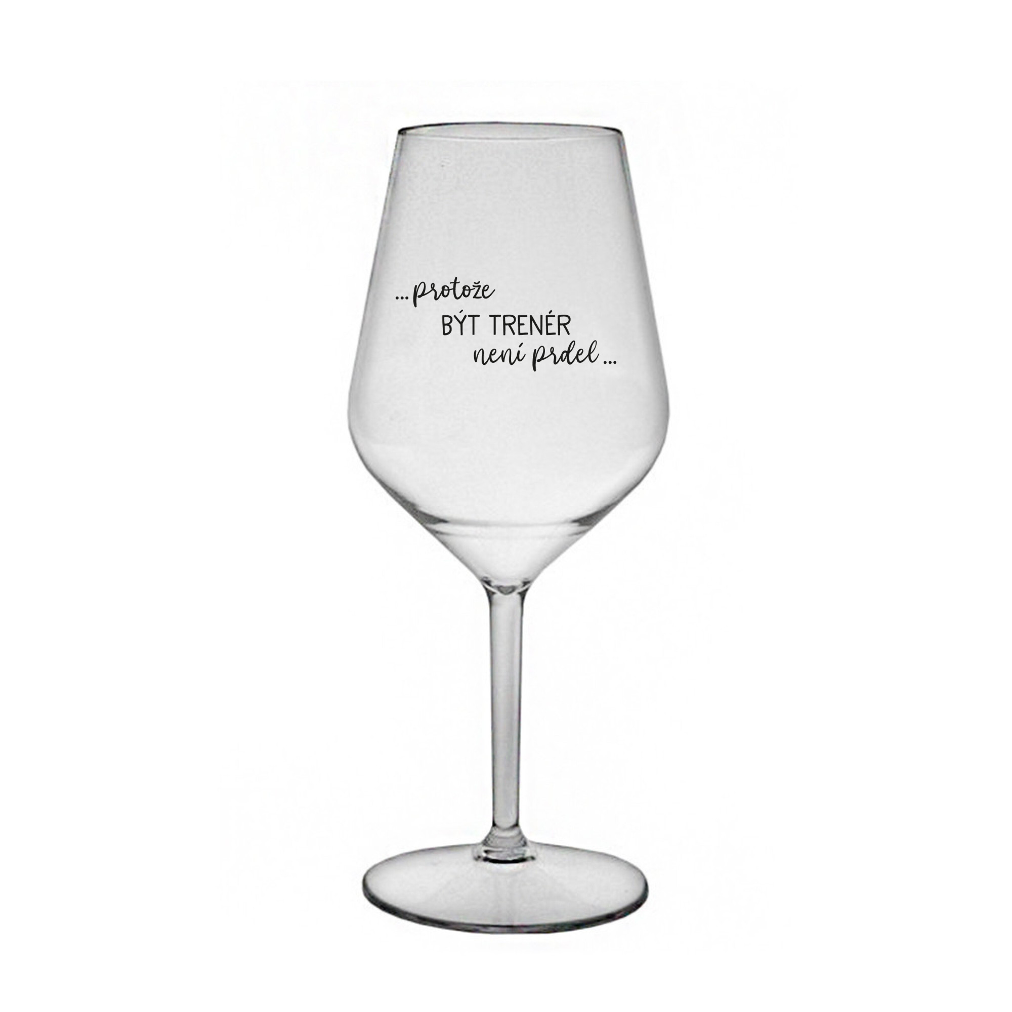 Nerozbitná čirá vinná sklenice s motivem PROTOŽE BÝT TRENÉR NENÍ PRDEL je skvělá na zahradu, pláž, výlet, piknik a parádu udělá i při kempování. Jelikož je vyrobená z kvalitního polykarbonátu je de facto nerozbitná. Je to luxusní kousek, s nímž si víno můžete vychutnat prostě kdekoliv. Mají ergonomický tvar, který příjemně padne do ruky a protože je lehká, usnadňuje to její přenášení. Je snadno skladovatelná a lehce se čistí. Díky svému designu si s ní můžete vychutnat doopravdy kdekoliv bezproblémové pití výborného vína. Materiál PP. Vyrobené s láskou v ČR