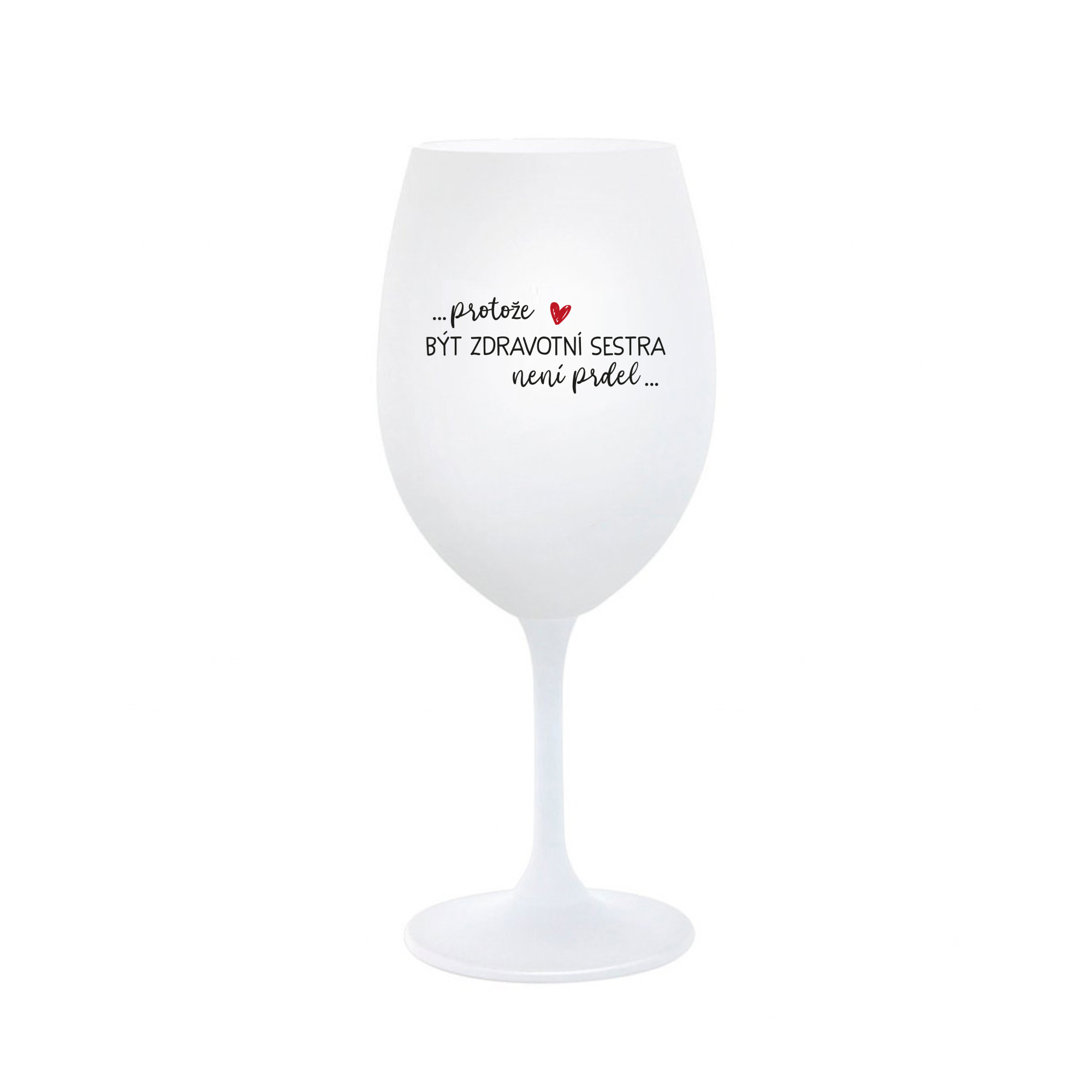 Vinná bílá sklenice s originálním motivem PROTOŽE BÝT ZDRAVOTNÍ SESTRA NENÍ PRDEL je krásným a osobitým dárkem, které ale využijete i Vy sami třeba ve chvílích, kdy si budete chtít zpříjemnit náročný den. Tyto originální vinné sklenice jsou totiž nejen pro výjimečné události, ale i pro běžné večery, které si chcete zpříjemnit sklenkou dobrého vína. Jistě proto potěší každého milovníka vína, i toho, kdo si umí svůj život vychutnat plnými doušky. Materiál sklo. Vyrobené s láskou v ČR
