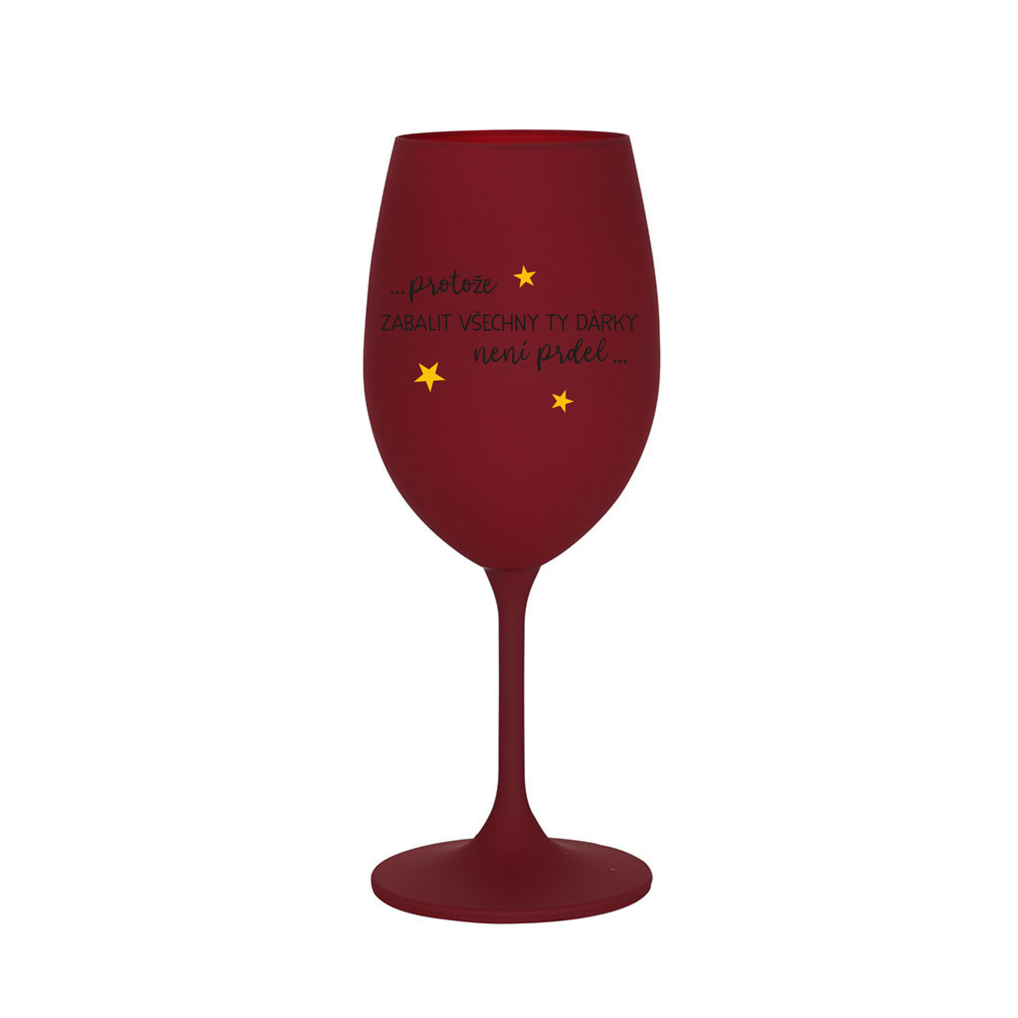 Vinná bordo sklenice s originálním motivem PROTOŽE ZABALIT DÁRKY NENÍ PRDEL je krásným a osobitým dárkem, které ale využijete i Vy sami třeba ve chvílích, kdy si budete chtít zpříjemnit náročný den. Tyto originální vinné sklenice jsou totiž nejen pro výjimečné události, ale i pro běžné večery, které si chcete zpříjemnit sklenkou dobrého vína. Jistě proto potěší každého milovníka vína, i toho, kdo si umí svůj život vychutnat plnými doušky. Materiál sklo. Vyrobené s láskou v ČR