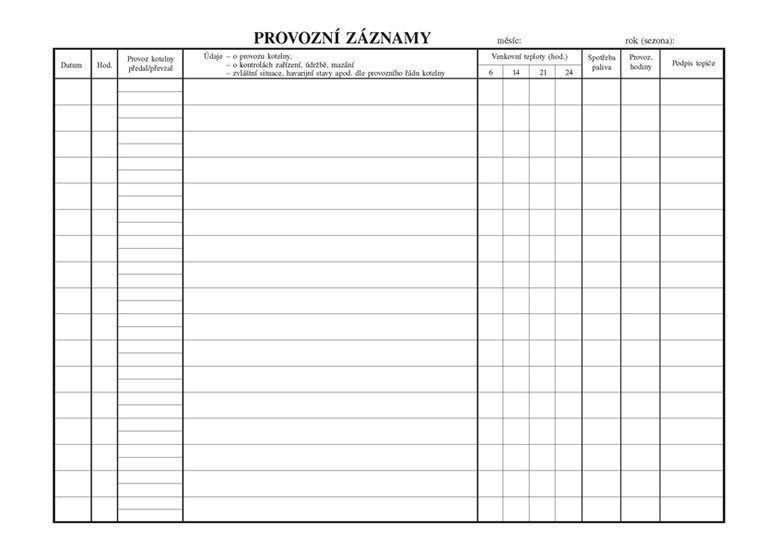 Provozní deník plynové kotelny - nepropisující tiskopis - nečíslovaný - formát A4 - žlutá obálka - blok 28 listů