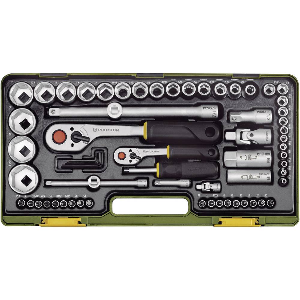 Sada nářadí a hlavic v kufru 1/2 + 1/4 65 ks Extol Craft 6598