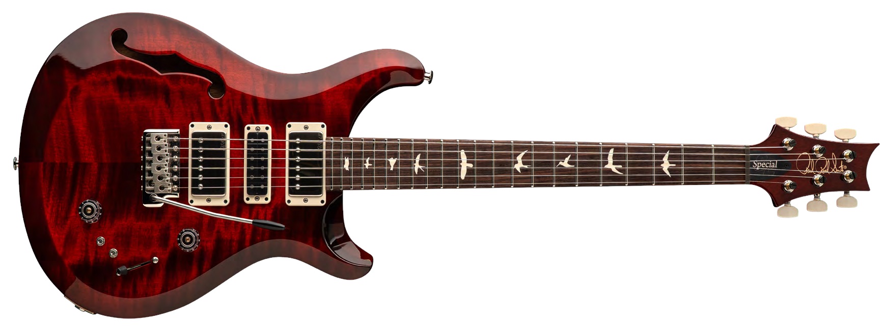 Semiakustická kytara Elektrické kytary PRS S2 Special Semi-Hollow jsou vyráběny v americkém Stevensvillu. Jedná se o mimořádně všestranné nástroje s ergonomickým PRS double-cut tvarem těla, pololubovou konstrukcí a rozšířenými možnostmi zapojení snímačů v H-S-H konfiguraci, se kterými budete excelovat ve studiu i na stage. Pololubové mahagonové tělo s jedním F výřezem kytary PRS S2 Special Semi-Hollow Fire Red Burst zdobí vyřezaný top z masivu javoru. Kresbu barevné úpravy
