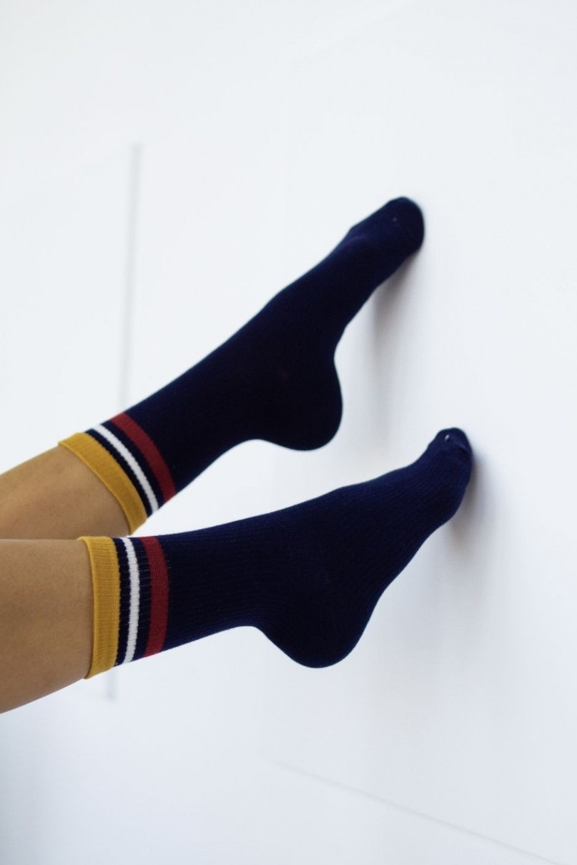 Bavlněné dámské ponožky hladké zakončené pruhy pro lidi, kteří ocení pohodlí. Jsou ideální pro každodenní styling. .