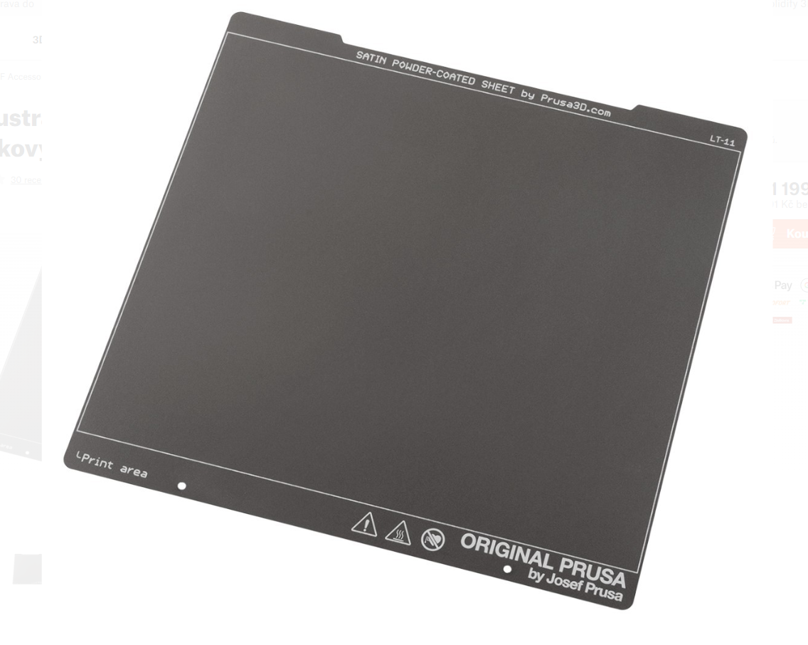 Plát se saténovým povrchem dále rozšiřuje naši nabídku tiskových plátů. Co se vlastností týče, jde o kompromis mezi hladkou a texturovanou variantou. Práškový povrch s jemnou matnou texturou umožňuje optimální adhezi, zejména pro tisk materiálů PLA a PETG. Je plně kompatibilní se širokou škálou dalších materiálů, jako je například ABS, ASA, FlexFill 98A, polykarbonát atd. Velkou většinu těchto materiálů lze tisknout bez separační vrstvy (např. lepidla). Vyhřívaná podložka MK52 má vestavěné magnety s vysokou Curieovou teplotou. Díky těmto magnetům pružné tiskové pláty pevně drží na podložce. UPOZORNĚNÍ: Abyste povrch odmastili, použijte čistou vodu, maximálně s kapkou prostředku na mytí nádobí. Použití běžných chemikálií, jako je IPA nebo aceton, vede k rychlému poškození povrchu, protože nevratně naruší strukturu práškového PEI povrchu. Kompatibilita: Original Prusa i3 MK2.5, MK2.5S MK3, MK3S, MK3S+, MK3.5, MK3.9 a samozřejmě také MK4, MK4S a Core One Poznámka: Záruka se nevztahuje na spotřební díly, kterými jsou například tiskové pláty (hladký, texturovaný, atd.). Jejich povrch se při tisku postupně přirozeně zeslabuje, nedojde-li k jinému poškození vinou únavy materiálu či výrobního zpracování. Záruka se nevztahuje na rýhy, škrábance, promáčknutí a další kosmetické vady. Záruka se vztahuje pouze na pláty defektní již při převzetí.