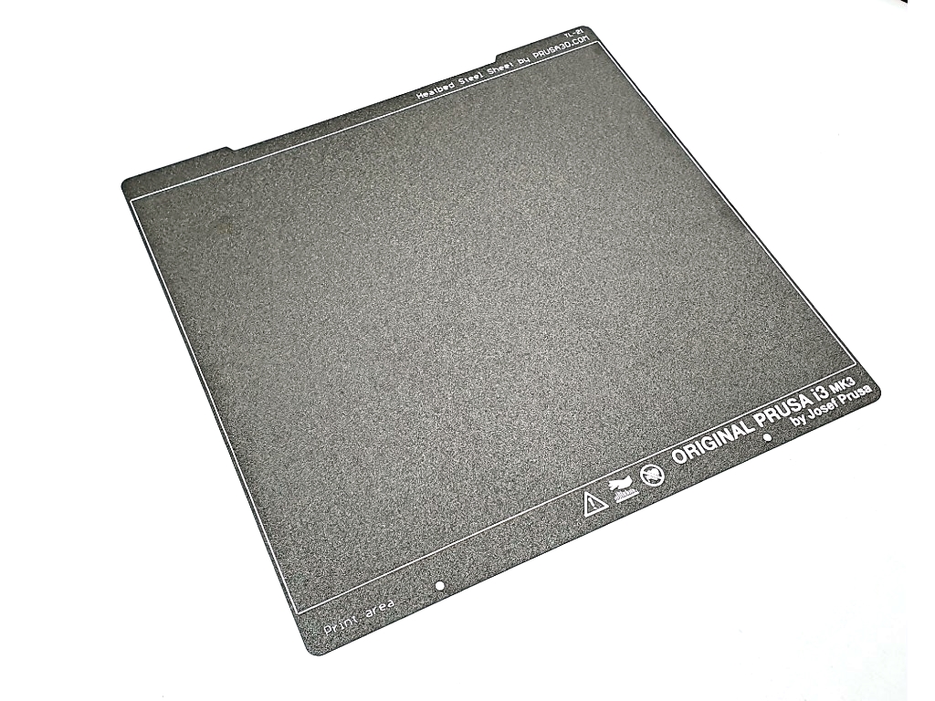 Práškový povrch je nanesený přímo na kovu, což činí tuto variantu plátu velmi odolnou proti poškození. Pokud do povrchu narazí rozpálená tryska, kov dokáže teplo rozptýlit. Prášková struktura rovněž dodává povrchu zřetelnou zrnitou texturu, která bude viditelná na vašich výtiscích. Na MK52 vyhřívaných podložkách, pro které je designovaný, drží systémem magnetů. To zajišťuje pohodlné sundavání plátu a zároveň je pevně zafixovaný na svém místě v průběhu tisku. Zrnitý povrch schová většinu mechanických poškození způsobených používanými nástroji. Poškrábané mohou být jen vršky malých hrbolků na povrchu, které pak nebudou vidět na spodní straně výtisku. Tento plát je použit i na Průšově tiskové farmě, takže jsou na něm vytištěny i plastové součásti vaší Prusa tiskárny, kde je patrný zrnitý vzhled povrchu. UPOZORNĚNÍ: Nikdy nepoužívejte na čištění zrnitého tiskového plátu aceton. Aceton naruší strukturu práškového PEI povrchu tiskového plátu a nevratně povrch zničí. Kompatibilita: Original Prusa i3 MK2.5, MK2.5S MK3, MK3S, MK3S+, MK3.5, MK3.9 a samozřejmě také MK4, MK4S a Core One Poznámka: Záruka se nevztahuje na spotřební díly, kterými jsou například tiskové pláty (hladký, texturovaný, atd.). Jejich povrch se při tisku postupně přirozeně zeslabuje, nedojde-li k jinému poškození vinou únavy materiálu či výrobního zpracování. Záruka se nevztahuje na rýhy, škrábance, promáčknutí a další kosmetické vady. Záruka se vztahuje pouze na pláty defektní již při převzetí. VLASTNOSTI Odolný proti poškrábání, těžko poškoditelný PLA výtisky s malou kontaktní plochou mohou potřebovat límec (brim) Textura se přenese do spodní strany výtisků PLA výtisky s velkým půdorysem se mohou kroutit Jednodušší Doladění osy Z Pokud vlastníte i plát s hladkým PEI povrchem, musíte při výměně upravit Doladění osy Z Není nutné čistit s přípravkem Windex před tiskem PETG Nikdy nečistěte acetonem! Není nutné použít lepidlo KORES před tiskem FLEX Po ochlazení plátu se výtisky automaticky odpojí První vrstva může být ve srovnání s hladkým plátem více zmáčknutá