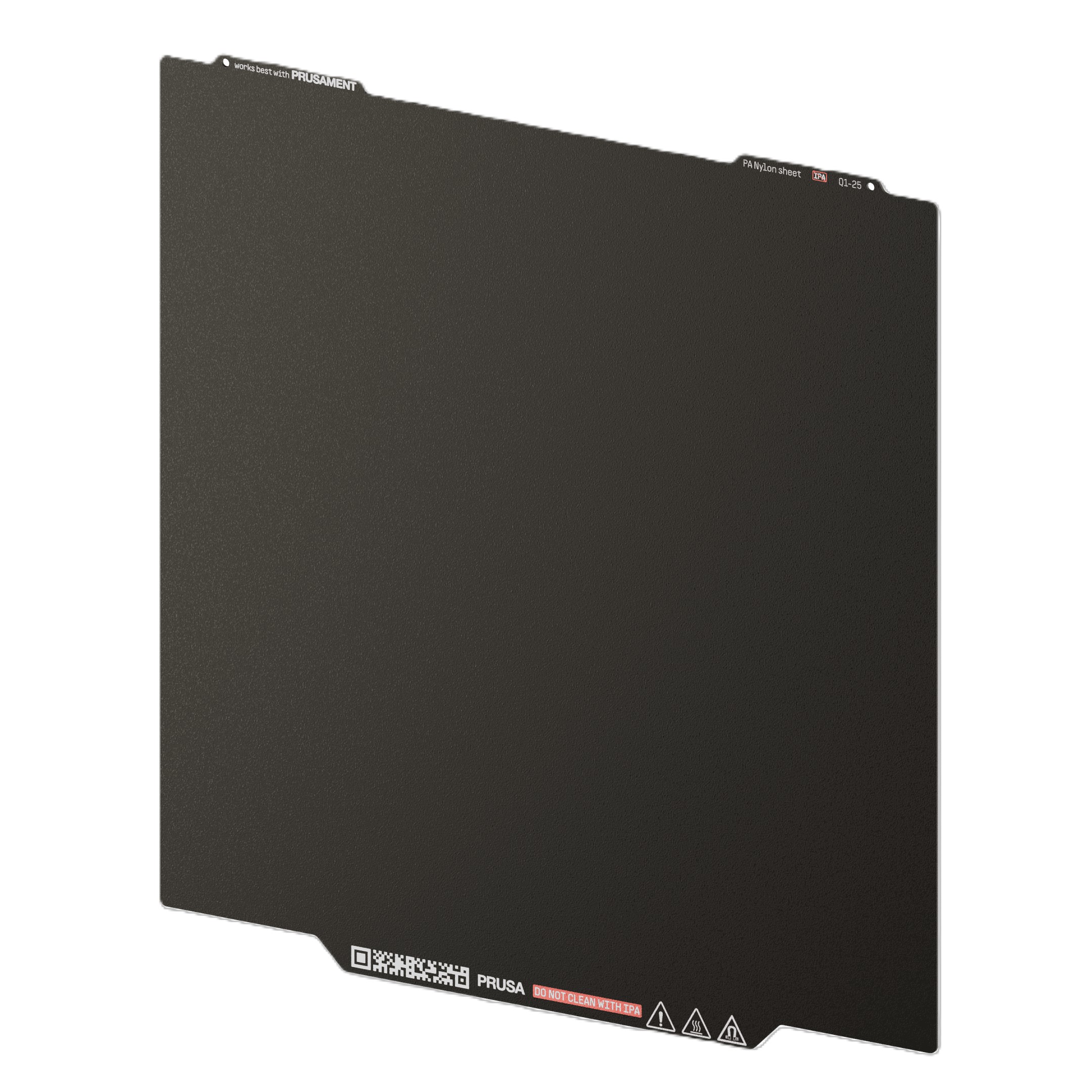 Prusa CORE One L PA nylon tiskový plát Heatbed MK52 má vestavěné magnety s vysokou Curieovou teplotou. Díky těmto magnetům pružné tiskové pláty pevně drží na vyhřívané podložce. Tato tisková podložka je speciálně navržena pro tisk filamentů na bázi polyamidu, ať už čistý nylon, či nylon s karbonem a jinými příměsemi. Tyto materiály mají obecně nižší přilnavost na běžných PEI texturovaných nebo saténových tiskových plátech. UPOZORNĚNÍ: Abyste povrch odmastili, použijte čistou vodu, maximálně s kapkou prostředku na mytí nádobí. Použití běžných chemikálií, jako je IPA nebo aceton by vedlo k okamžitému poškození povrchu, protože nevratně naruší strukturu práškové vrstvy. Kompatibilita: Core One L Poznámka: Záruka se nevztahuje na spotřební díly, kterými jsou například tiskové pláty (hladký, texturovaný, atd.). Jejich povrch se při tisku postupně přirozeně zeslabuje, nedojde-li k jinému poškození vinou únavy materiálu či výrobního zpracování. Záruka se nevztahuje na rýhy, škrábance, promáčknutí a další kosmetické vady. Záruka se vztahuje pouze na pláty defektní již při převzetí.